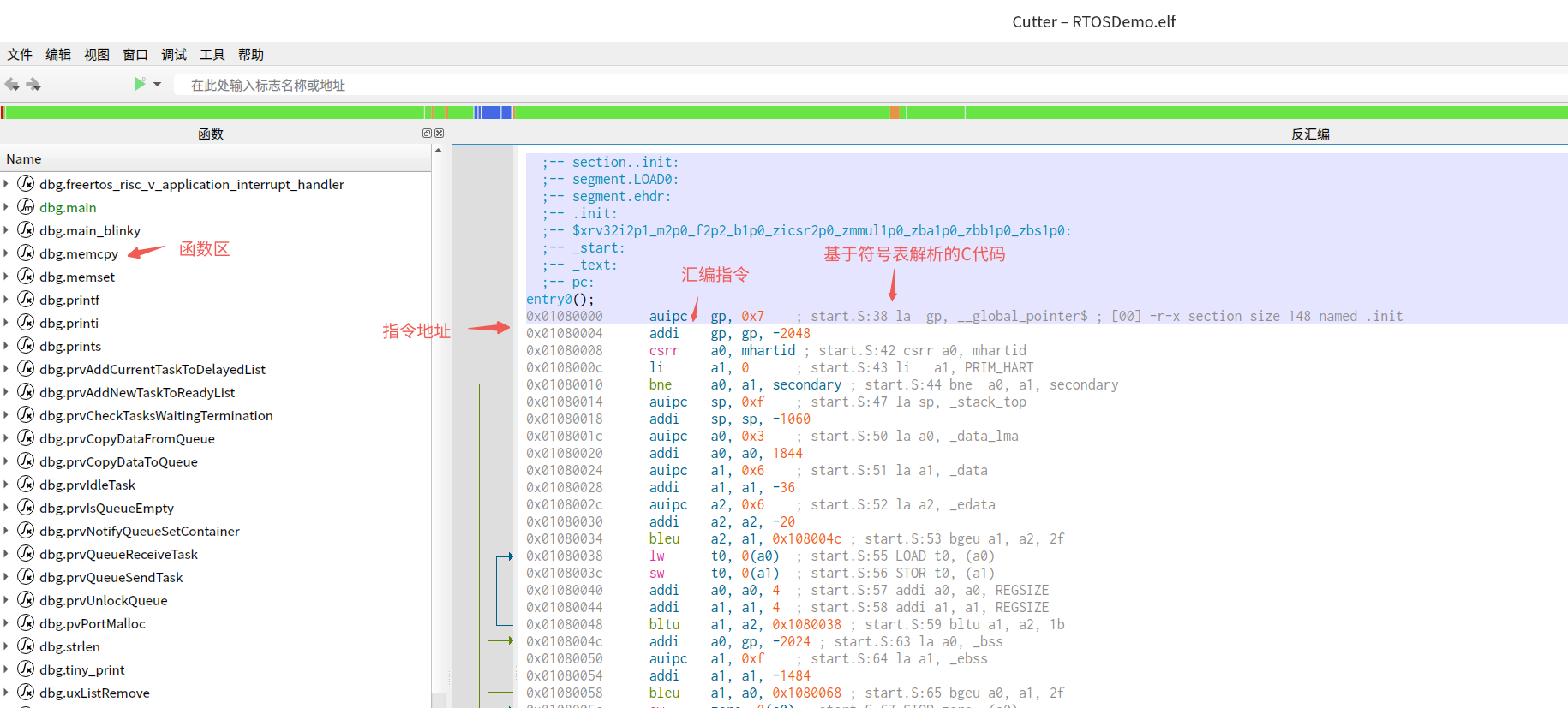 cutter RTOSDemo.elf界面如下:
